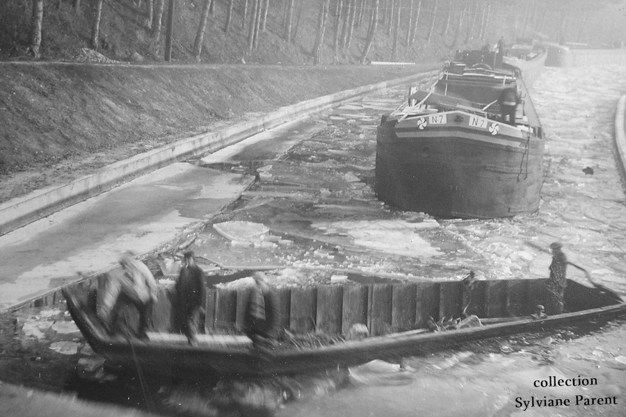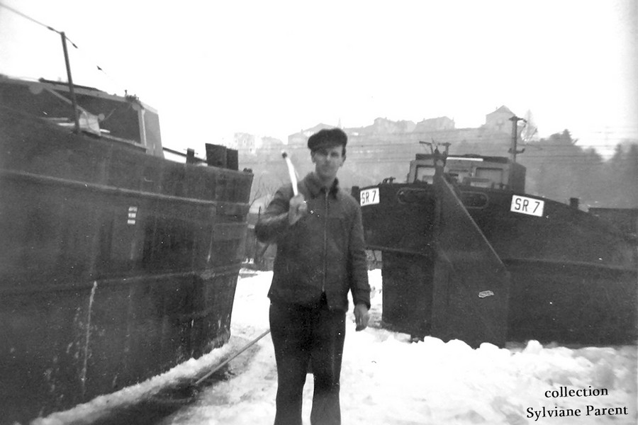 En 1949, la soudière Marcheville-Daguin fusionne avec la soudière Saint-Gobain de Varangéville pour former la société "Les Soudières Réunies de La Madeleine - Varangéville". Les flottes "MD" et "St GOBAIN" deviennent "SR", le MD7 devient SR7 ; le voici à nouveau dans les glaces (oui, ces bateaux naviguaient exclusivement en Lorraine !), à vide, à Liverdun, en 1963 :