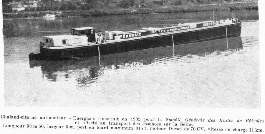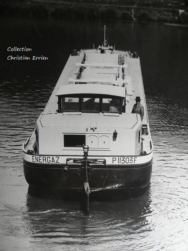 ENERGAZ P11303F, qui a peut-être été prise au même moment que celle publiée plus haut, tirée de "La navigation du Rhin - Revue de la navigation intérieure" de décembre 1934, c'est-à-dire à la sortie de chantier, pendant une présentation ou des essais :
