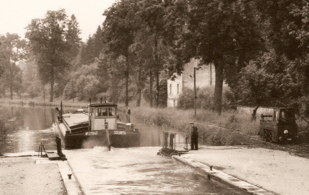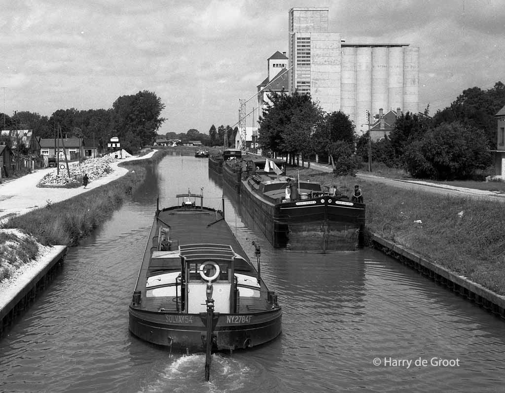 SOLVAY 79 et SOLVAY 54, malheureusement un peu flous, dans une écluse en palplanches :