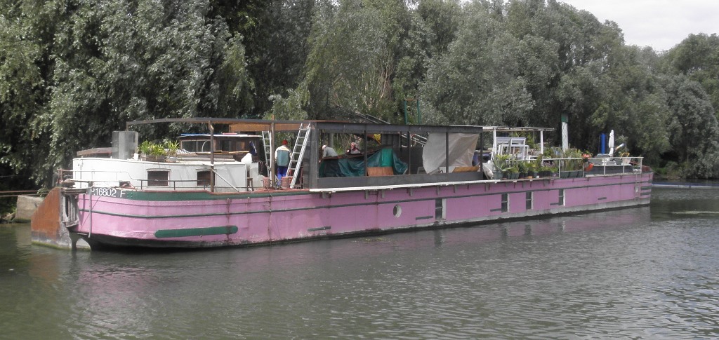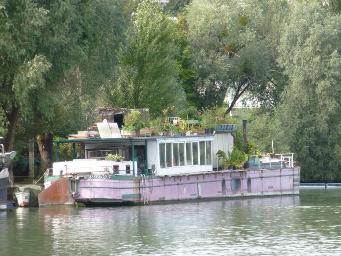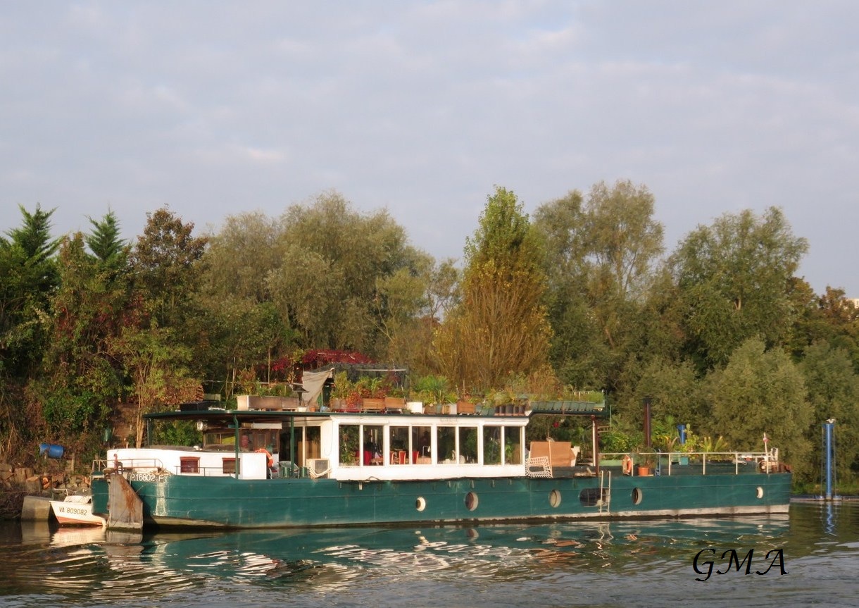 C'est à moi de venir en Seine faire les photos ! L'Pimpon l'avait bien vu, lui, heureusement, ce qui m'a permis de faire quelques photos de cet ex-Solvay devenu bateau logement, en aval de Bougival ! (pour vous aider à situer, c'est là où il y a le