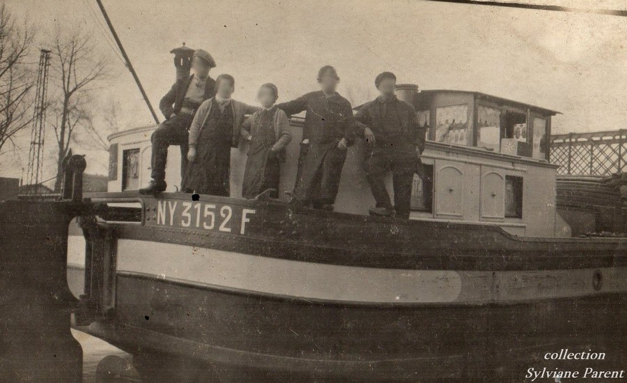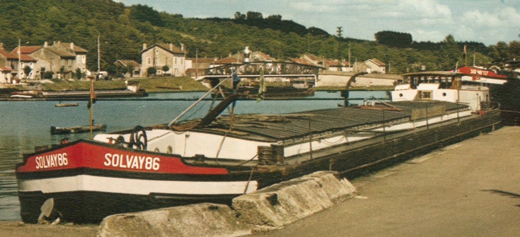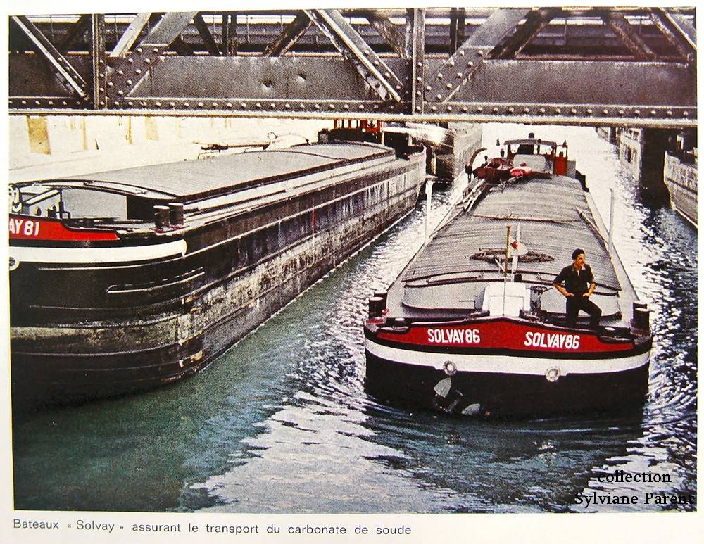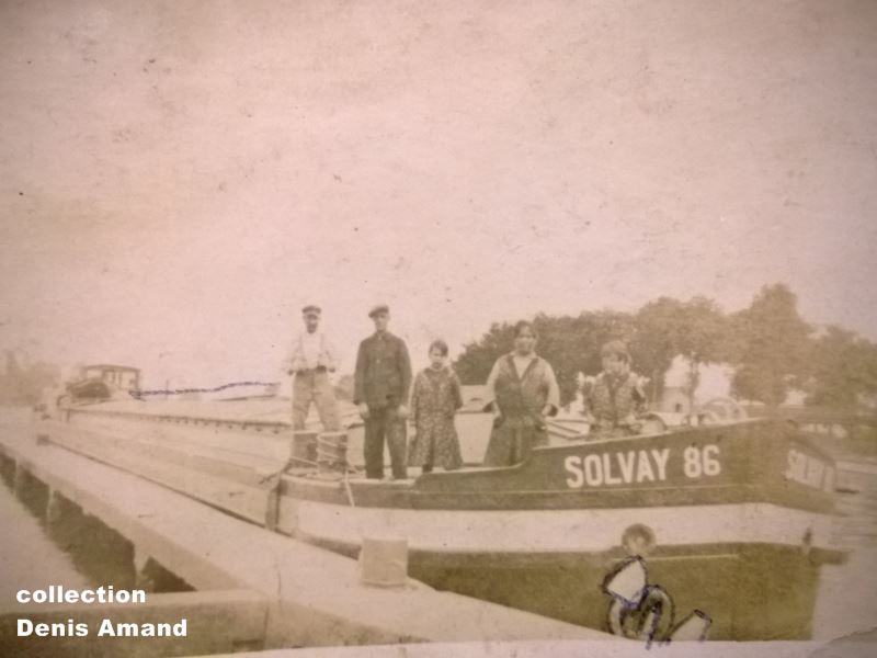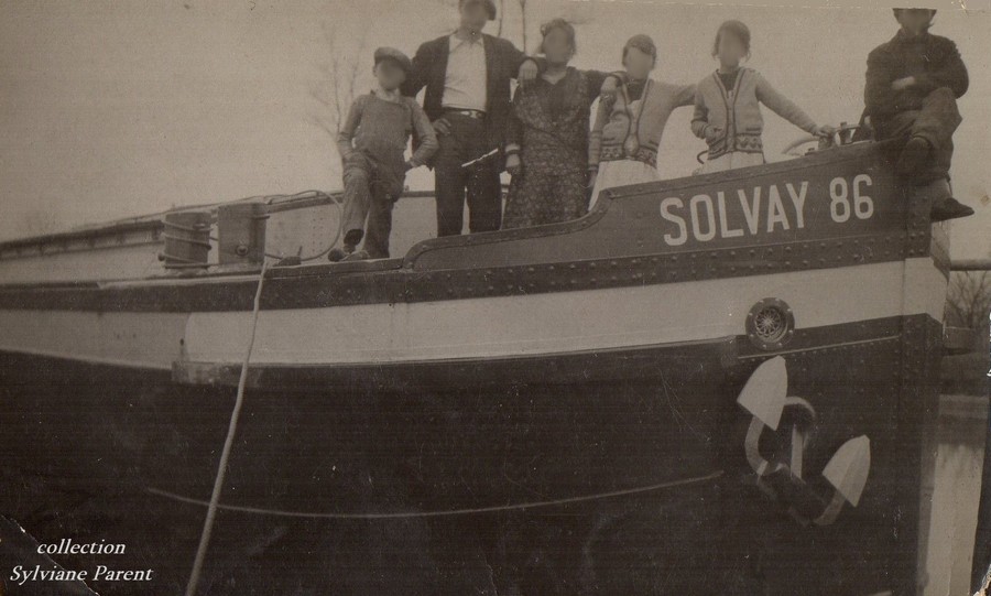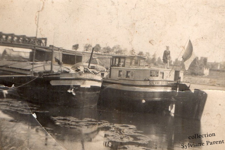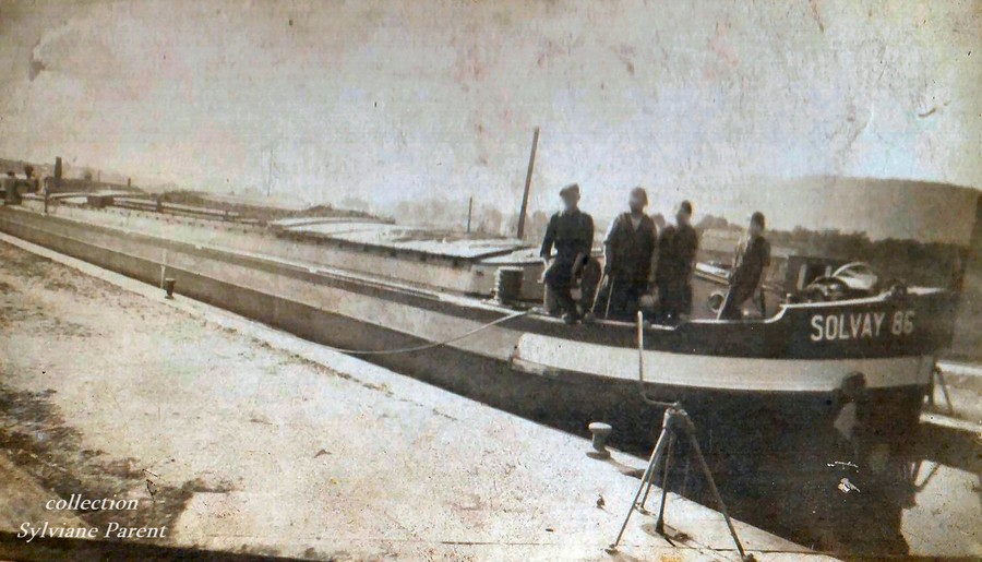 À l'époque de cette photo, le capitaine du SOLVAY 81 était René Parent (c'était le papa de Norbert, mon époux). Il avait pris ce bateau en 1958 et a été au chantier à Chalon-sur-Saône pour transformations en 1962, c'est là que les hublots devant ont été supprimés. Donc cette photo date de l'époque entre 1958 et 1962.