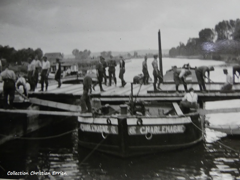 Sur cette photo originale prise pendant la WW2 on peut voir un grand numéro nommé CHARLEMAGNE dans un pont de bateau. Il a le logo de la CITE