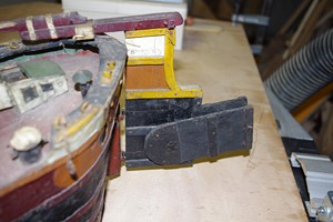Pour revenir à la maquette, voici une photo en cours de remontage, tout y est dans le moindre détail, on peut voir les..??..que je sais plus le nom mais qui sont en profil U pour étancher les écoutilles.
