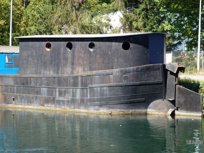Mes batteries étaient chargées ce jour de septembre 2012, quai Jacoutot à Strasbourg, voici donc ce bateau, dont j'ai appris aujourd'hui sur Facebook qu'il a été déchiré récemment (cet hiver d'après Alain E.) :