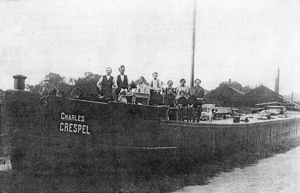 - « Sur la photo on observe la famille armentiéroise Verween (naviguant d'ordinaire sur la Deûle) posant ici sur le bateau "Charles Crespel". Ce bateau transportait de l'acide chlorhydrique pour les Ets Kuhlmann à Loos (59). La famille Verween était Belge. La petite fille que l'on voit avec le grand nœud blanc dans les cheveux est née a Loos en face de l'usine Kuhlmann. Elle aurait eu comme marraine Mme Kuhlmann en personne. »