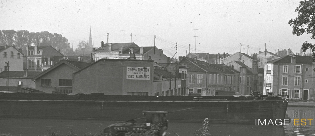 Au premier plan, le tracteur est un J30 de la CGTVN, et justement, la photo a été prise en face du bâtiment de la CGTVN, rue Charles de Foucauld ; aujourd'hui, c'est le siège de l'Unité Territoriale d'Itinéraire Canal de la Marne au Rhin Est- embranchement de Nancy de la direction territoriale Nord-Est de Voies Navigables de France.