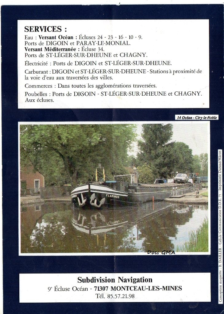 Sur la 4ème page d'une plaquette éditée par la DDE (qui gérait le canal du Centre, pour le compte de VNF) on voit ce bateau belge : date estimée 1980-85