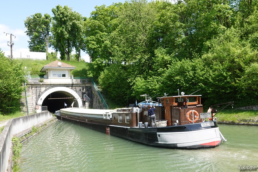 Sur le canal de l'Aisne à la Marne, en mai 2023 : il avait chargé de l'orge à Saint-Germain-la-Ville (51), pour Ruisbroek (B) ; sur les deux premières photos, il est montant dans la vallée de Condé et les deux suivantes, c'est à la voûte du Mont de Billy.