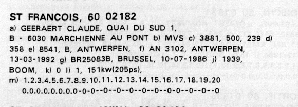Pour ce numéro, dans l'IVR 1989, on trouve un SAINT FRANCOIS, d'un chantier de Boom de 1939 :