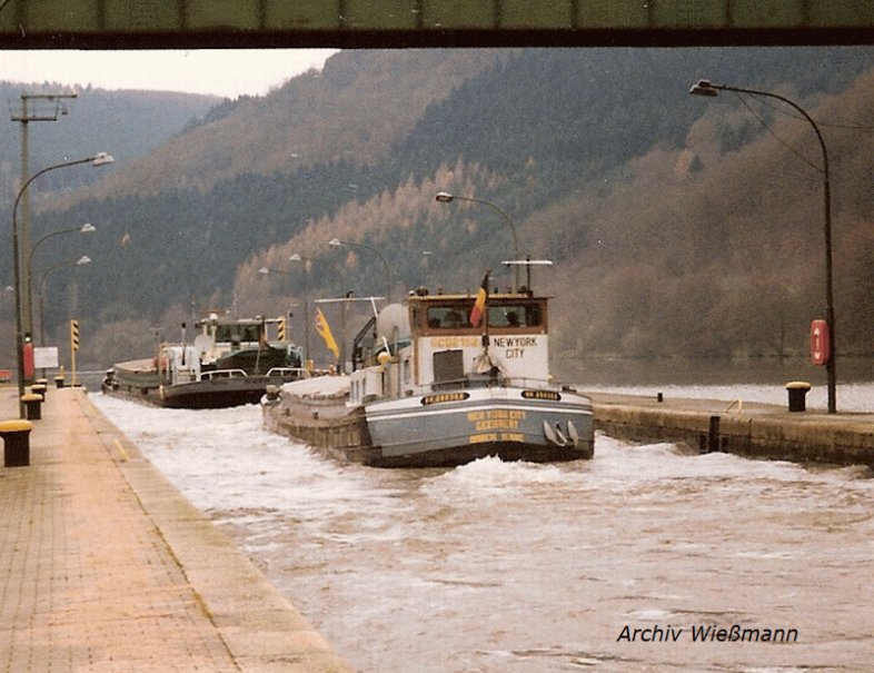 Ici la peniche comme NEW YORK CITY en Allemagne dans l`écluse de Faulbach sur le Main (un peu a l`amont de Miltenberg) en 1992 ou 1993. (Photos par Wießmann avec autorisation)
