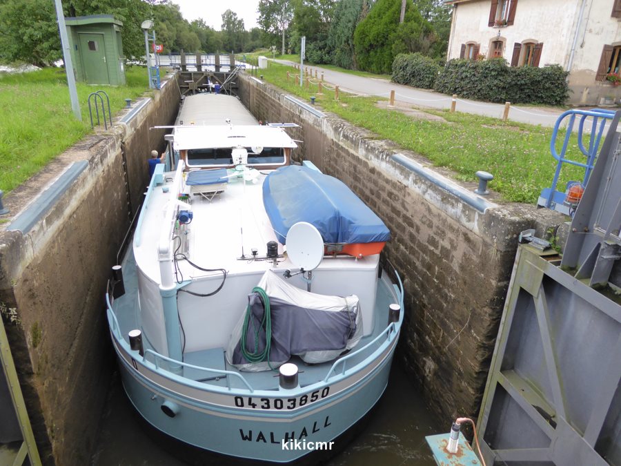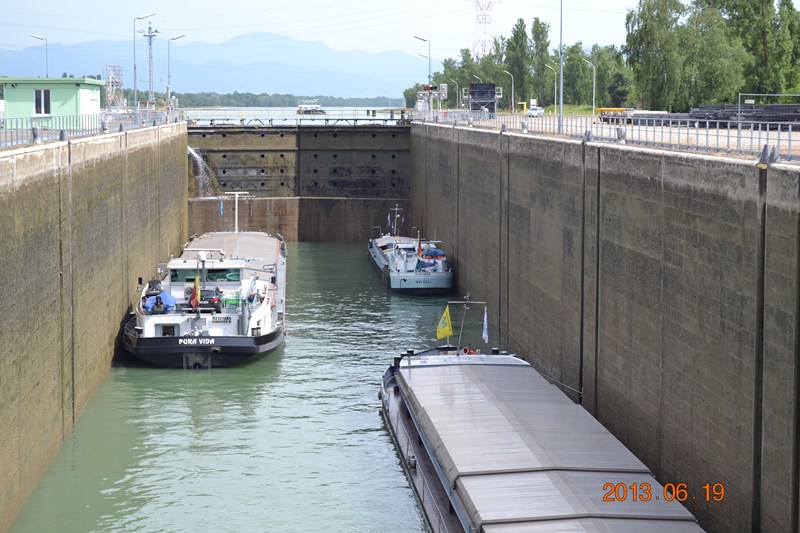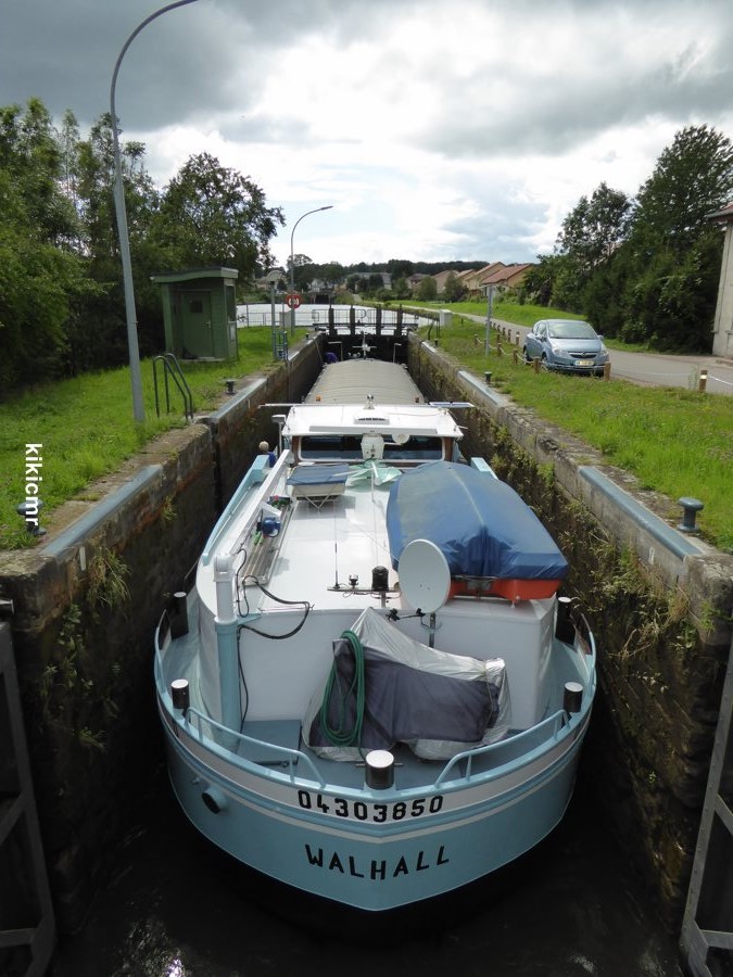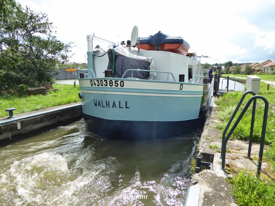 Donc sitôt le plaisance sorti, op l'on rempli l'écluse, sans réfléchir que le 38 m n'est pas encore échappé la porte de garde (à environ 200 m).Résultat, avant que le niveau du bief revienne normal, il se passe environ 30 mn. C'est beau d'appliquer les notes de services à la lettre, mais parfois le bon sens......