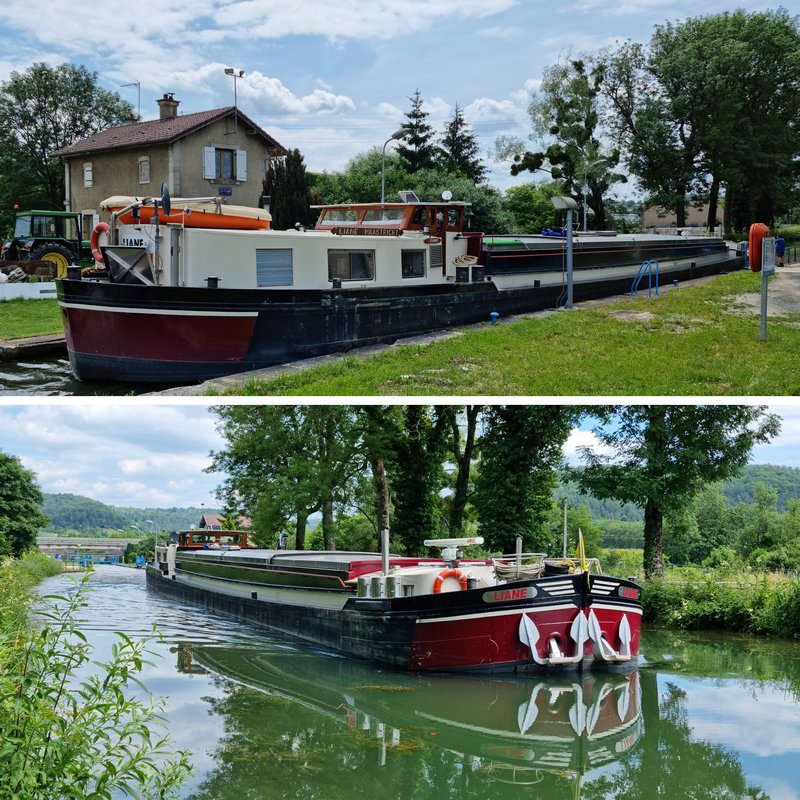 En mai 2023 dans le canal d'Abbécourt, écluse n°7 de Chaillevois (commune de Chavignon, 02), avec des coils de Kallo (B) pour Contrisson (55) :