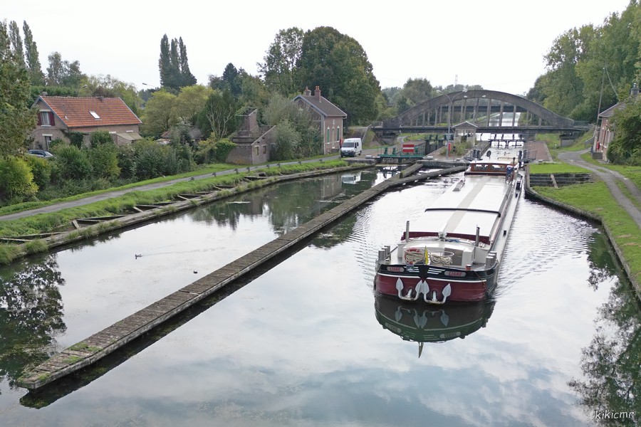 En septembre 2022, écluse Pascal à Lesdins (02), canal de Saint-Quentin, avec de l'orge de Nemours (77) pour Ruisbroek (B) :