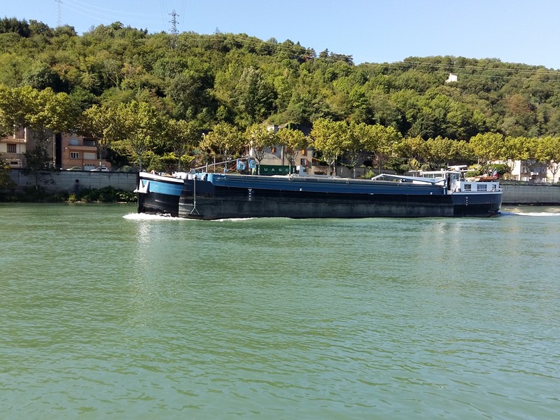 Ca n'a pas été facile, avec un ballast arrière qui enfonçait le bateau à 1,75 m, mais il y est parvenu, preuve que techniquement, on pourrait bien faire revenir du fret fluvial chez nous avec une charge un peu modeste au début (220 T), et en chargeant de plus en plus jusqu'aux 250 T au fur et à mesure des passages.