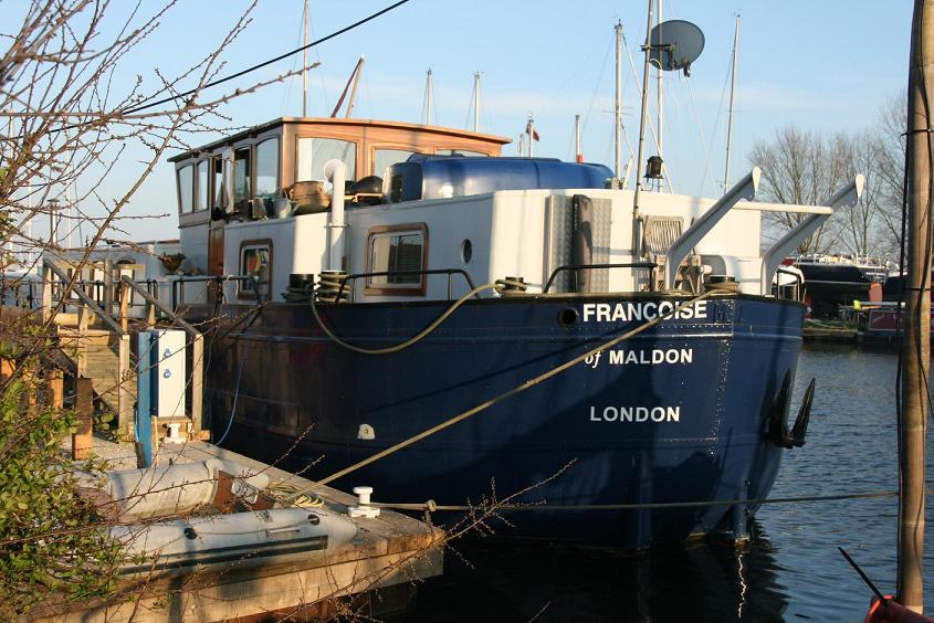 Une autre ex-peniche, avec un nom français et peut-être avec cette origine. Le FRANÇOISE OF MALDON, est enregistré à Londres, mais se trouve comme habitation à Heybridge Basin pret de Maldon, Essex, Angleterre.