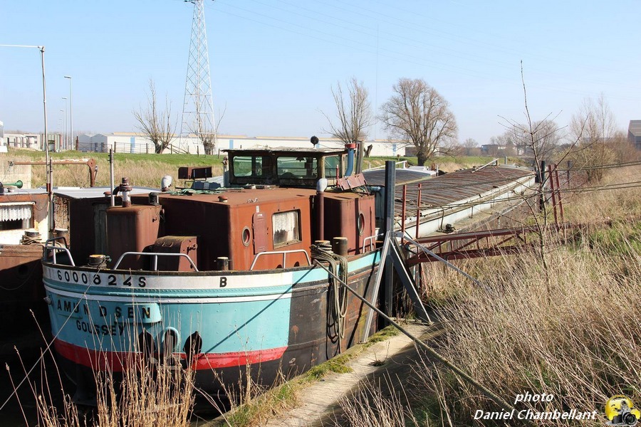 Il existait toujours en mars 2014, ce bateau, il était alors amarré dans la vieille Lys à Vive-Saint-Éloi (photos de Daniel Chambellant, du 9 mars 2014) :