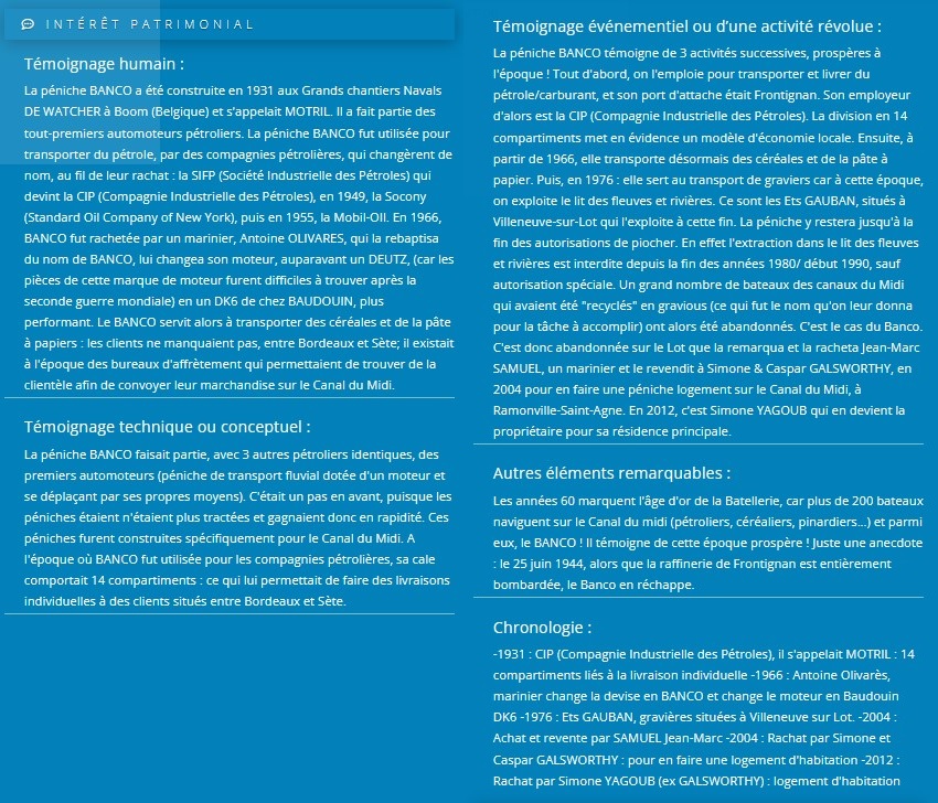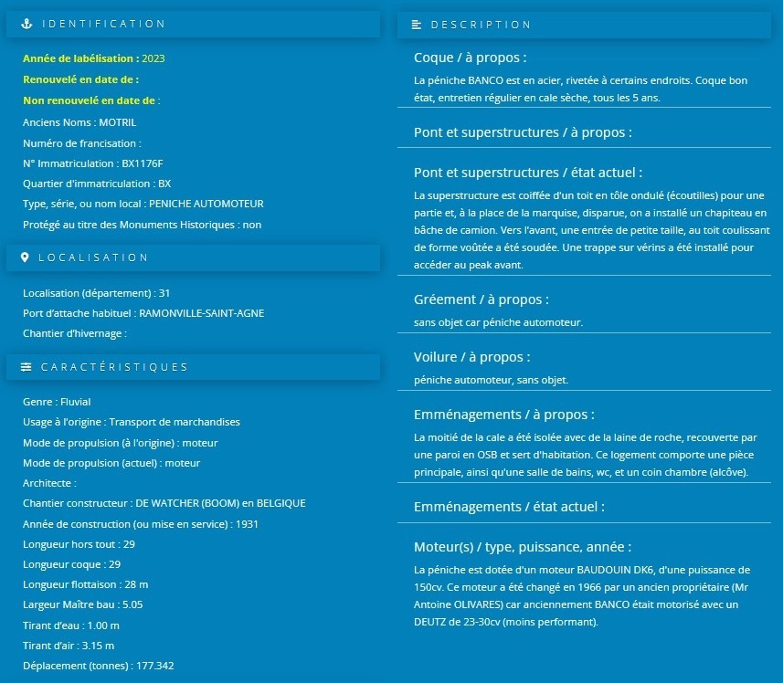 Le BANCO - BX1176F - a été labellisé PATRIMOINE MARITIME ET FLUVIAL en 2023.