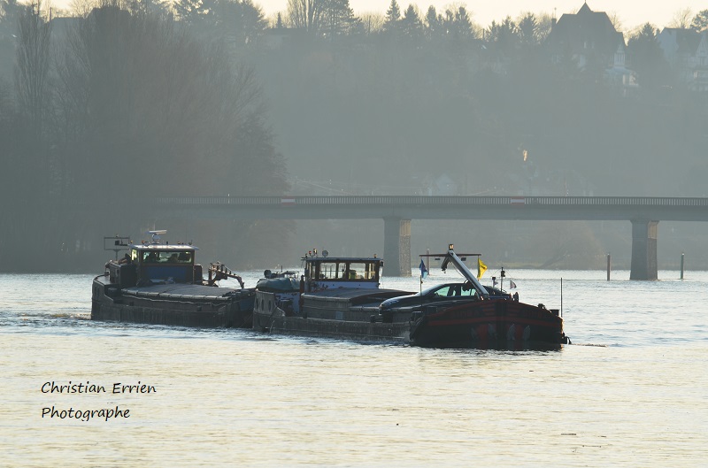 Une vue du DEFACTO poussant SIMBA à Champagne et une autre à Fontaine le port. C'est la reprise de navigation après un arrêt bien long....