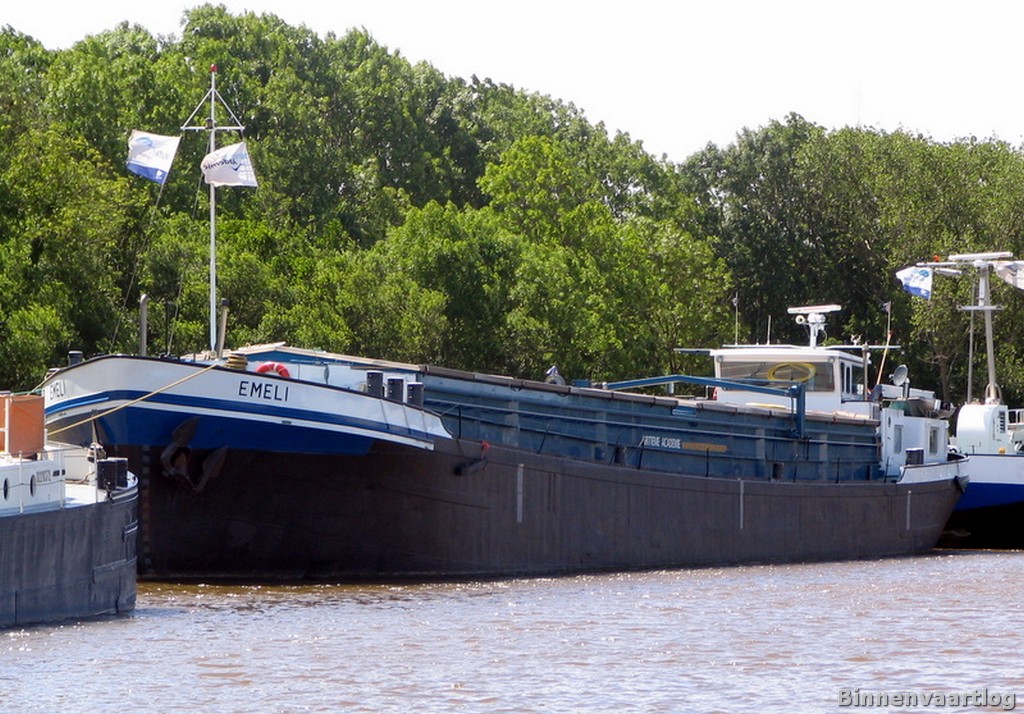 Emeli , 54,99 x 7,28 x 2,63 , 682 ton , Bouwjaar 1961 , Werf St.Pieter in Hemiksem ( Belgie ) , 2 x 240 pk GM en 120 pk Scania boegschroef , ex Octavie , ex San Remo , ex Hollandia , ex Krammer , ex Emeli , eigenaar Maritieme Academie in Harlingen , ENI 02313206.