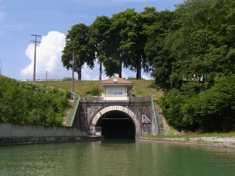 Le bâtiment à droite est l'ancienne usine du funiculaire occupée à ce moment par la CGTVN. Comme c'est un jour de chômage les tracteurs sont au garage. Dommage, il y en avait toujours plusieurs stationnés derrière le garde-corps métallique. Soit ceux de la voûte avec la porte coté canal, il y avait assez de place pour passer entre les deux, soit ceux de bief avec la porte coté terre, soit un peu des deux suivant le trafic.