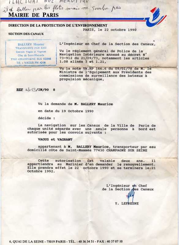 pour naviguer avec un convois pousse sur les canaux de la ville de PARIS