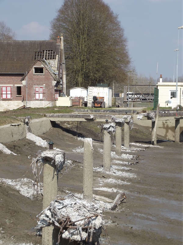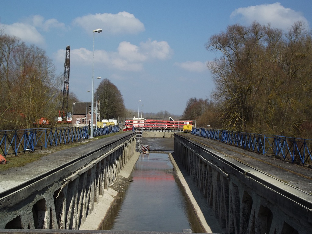 Le coup d'oeil vaut le détour, actuellement le pont-canal jusqu'à l'écluse est vide. La démolition a commencé. Une affaire à suivre.