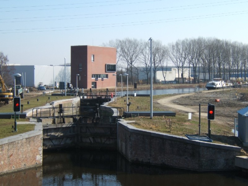 Avant d'entrer dans l'ecluse. A l'arriere le petit port de plaisance de Kampenhout