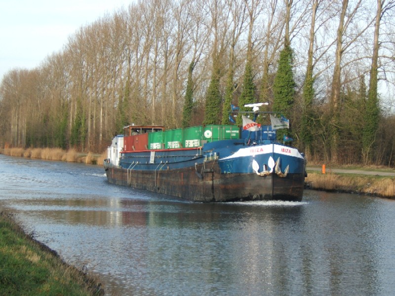 Toujours dans la serie des campinois, un autre habitue du canal de Louvain l'IBIZA qui transporte aussi des conteneurs pour la malterie. Ca marche les brasseries !