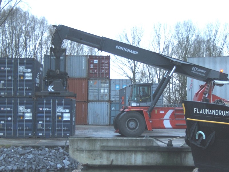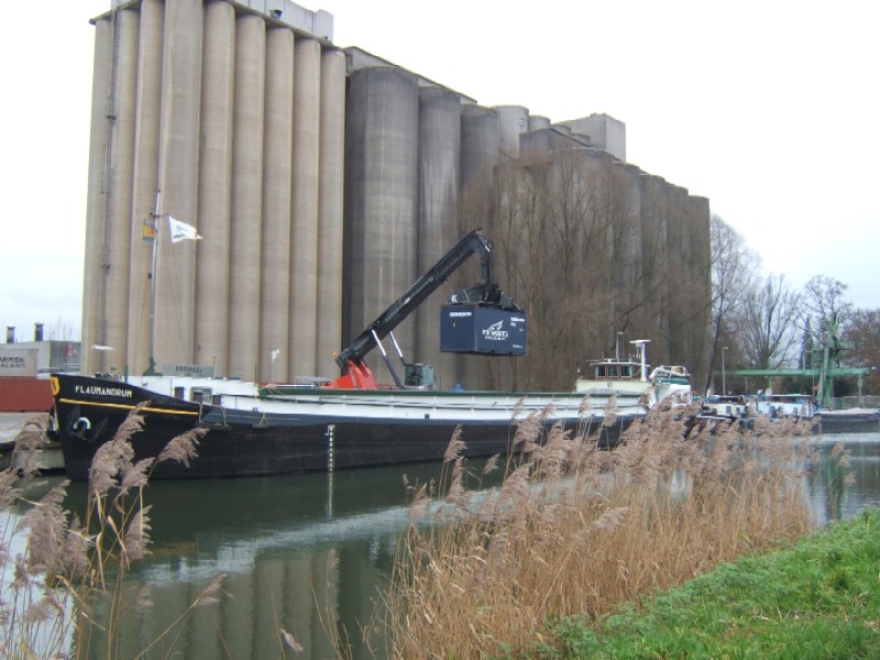 Dans la serie des "campinois" le Flaumandrum construit en 1965 chez Fulton a Willebroek (Belgique) 650 T 50,93 x 6,62m. Il transporte bien souvent des conteneurs pleins de malt.