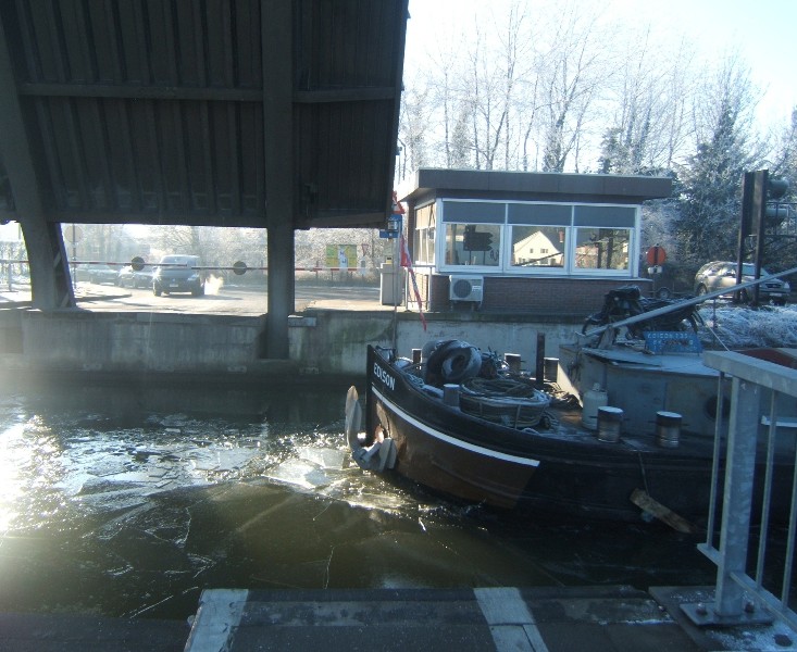 Pont levant de Tildonk et l'etrave de l'Edison qui fend la glace