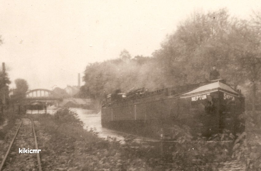 Pour la localisation : la voie de la traction, sur le chemin de halage, est à écartement de 0,60m, c'est donc en Alsace, sur le réseau de la Traction de l'Est, puisque le réseau de la CGTVN était à écartement métrique. Est-ce le canal du Rhône au Rhin, branche Nord ? Il y a un pont et une cheminée d'usine à l'arrière-plan, une maison sur la droite, peut-être que ces indices permettront à quelqu'un de situer plus précisément la scène.