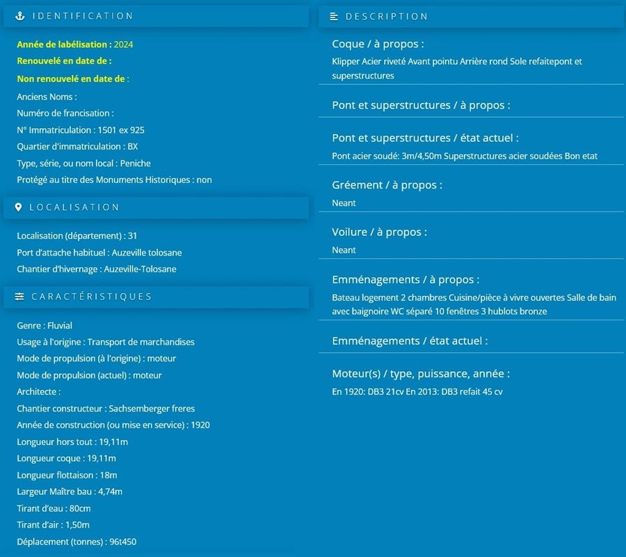 Chaland citerne en fer construit par Sachsemberg Frères à Cologne en 1920, jaugé le 10/05/1921 à Cette.