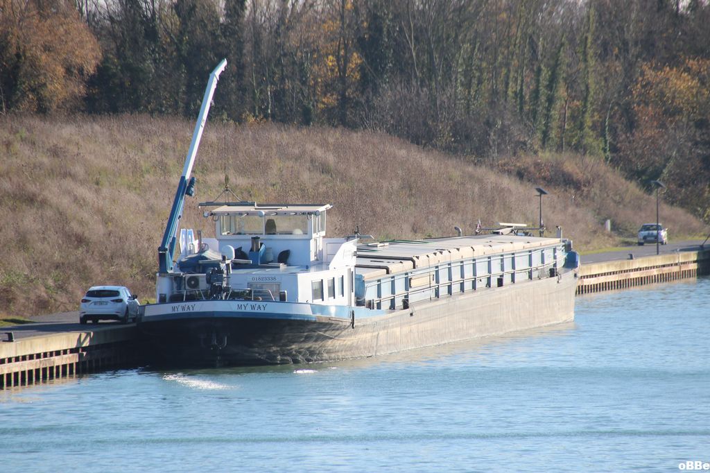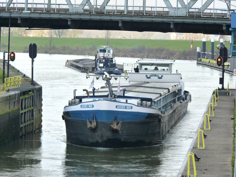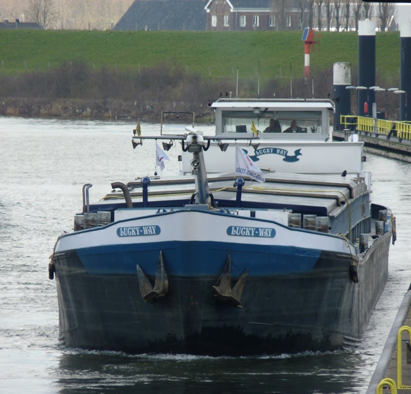 Lucky Way , 80,09 x 8,20 x 2,51 , 1102 ton , Bouwjaar 1954 , Werf Hilgers in Rheinbrohl ( Duitsland ) , 862 pk Mitsubishi , ex Peter , ex Rhenus 122 , ex Tramp , ex Jorax , eigenaar A. Havez in Dunkerque , ENI 01823338