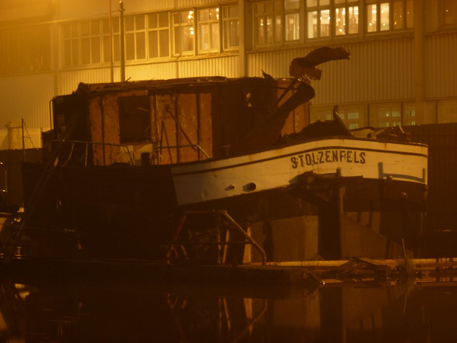 Un bateau fier, oui, mais il y avait aussi de la tristesse avec le STOLZENFELS. L`ancien propriétaire tombait dans l`eau en hiver et se noya – c`était au nord le la France, je ne sais pas le lieu exacte.