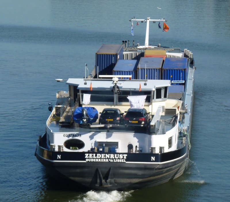 Zeldenrust , 85,99 x 11,45 x 3,60 , 2407 ton , Bouwjaar 2007 , Werf Hans Boost in Trier ( Duitsland ) en De Groot Motoren Dordrecht in Dordrecht , 1300 pk Cummins en 2 x 535 pk Cummins-Verhaar boegschroef , eigenaar Vof. N.C. Stam in Ouderkerk a/d IJssel , ENI 02328673