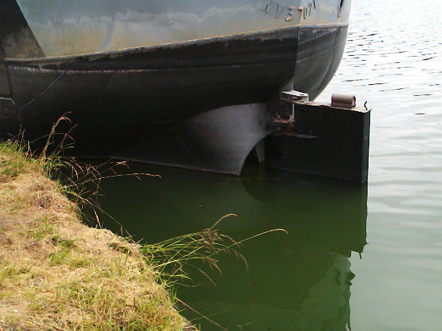 Voici une photo de l'arrière du "Leandre" que j'ai pris au mois de juin 2009 à Berry au Bac, sur laquelle on peut voir que le gouvernail a été soude fix, et qu'il n'avait plus sa parti arrière qui fonctionait.