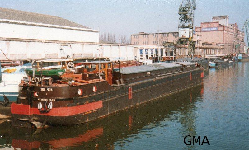 Je me souviens et on peut aussi lire sur le bateau (SBD) que ce soit une peniche sarrois. Ca pourrait être SBD 386 ou 306. J`avais toujours pensé que ce soit la SYBILLE, mais si on compare le photo avec d`autres photos qui montrent la SYBILLE il y a des doutes. Il semble être une autre bateau sarrois! Le chantier n`est pas si difficile