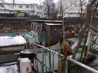 Ah - je me suis trompé concernant le chantier... (peut-être à cause de la toilette :oops: ) .Je mets les deux photos ici parce que je ne sais pas la devise du bateau, pris à Saarbrücken dans le port de l`est (Osthafen) en décembre 2010. Peut-être la toilette n`est pas original :shock: :mrgreen: