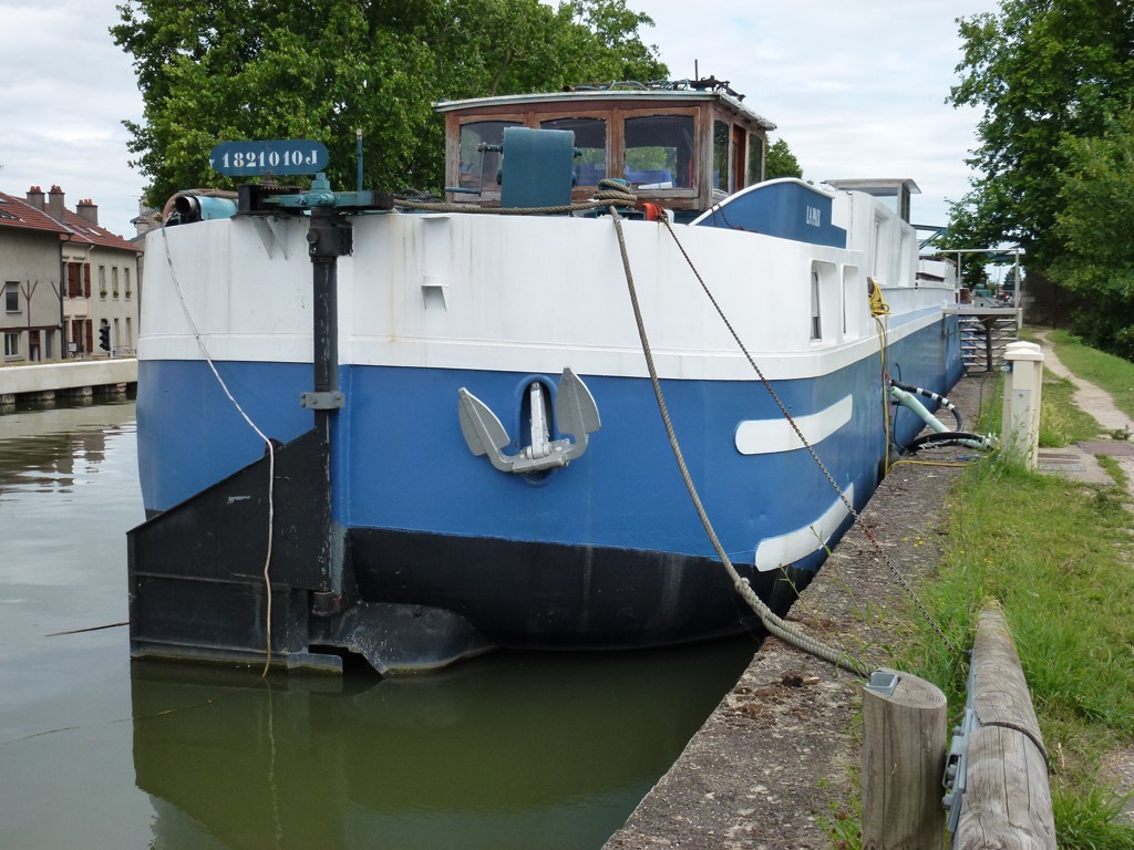 Il est amarré à l'aval de l'écluse de Dombasle. Au loin, devant lui, je crois que c'est l'EL PASO.