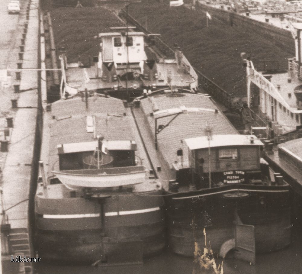 Et il se trouve que Raymond Turin, sur Facebook, a confirmé que c'était bien le bateau de ses parents à Denain, un bateau construit chez Demay, le CHADI ex ROBERT qui par la suite s'est appelé PELAGIE ; ça tombe bien, PELAGIE c'est la devise qu'on arrive à déchiffrer sur les fargues de la photo de l'avant, maintenant qu'on la connaît (Orvanne parle même de SAINTE PELAGIE).