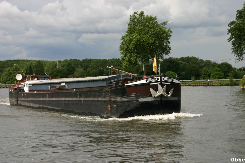 DARGILAN partait d'Arleux vers le chantier de Beez, avec, pour une dernière fois, Annie et William au macaron. Il sera raccourci à 30 mètres puis, par Nieuport, rejoindra l'Angleterre, où il servira de bureau sur la Tamise (photo et infos Roger Thiais et Cindy Caillez) :
