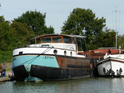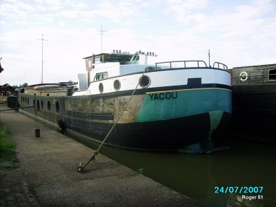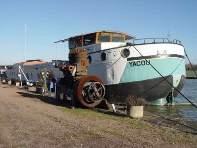 Photo de février 2000, à l'entrée de la Vallée de Cayenne, côté canal de la Marne au Rhin à Laneuveville-devant-Nancy. Le bateau s'appelle YACOU, je me rappelle que je le voyais dans mon enfance, mais ça fait longtemps que je ne l'ai plus vu... Je ne connais pas le matricule, mais je peux lire sur la plaque près de la marquise que son port d'attache est St-Jean-de-Losne.