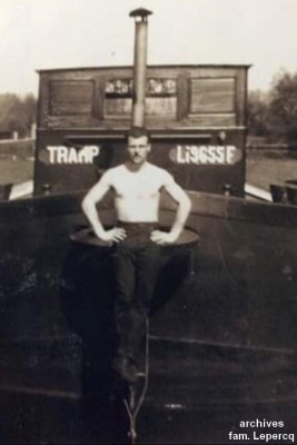 Ses parents ont conduit ce bateau qui appartenait au chantier Demay de Lambres-lès-Douai avant que son père (c'est lui qu'on voit sur la photo) ne parte au service militaire. Sur la photo, le bateau n'a que trois ou quatre ans !
