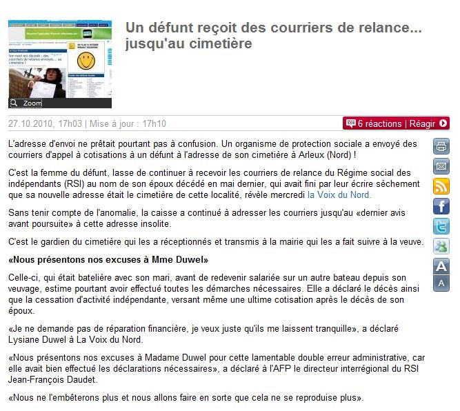 La Caisse de RSI (Régime Social des Indépendants) lui réclame des citations non payées....