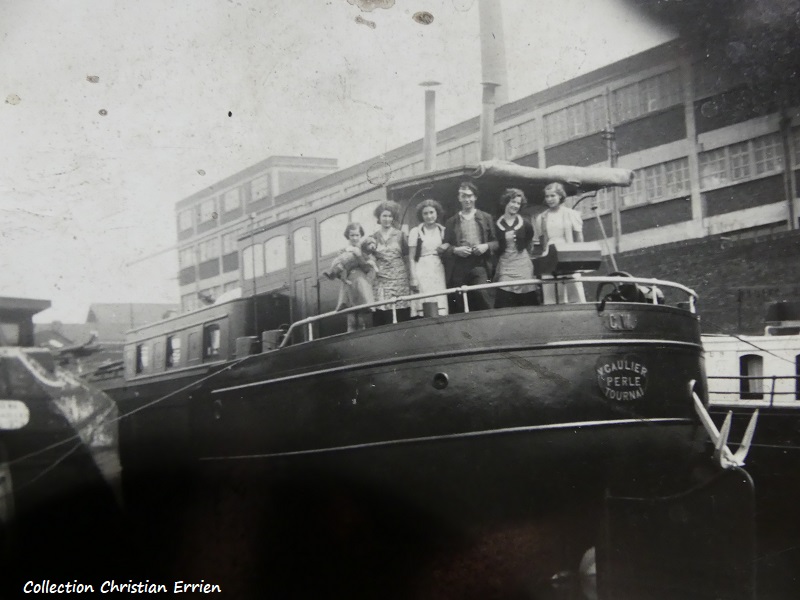 Voici une photo originale montrant le bateau PERLE à Caulier de Tournai.