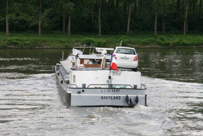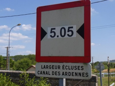 Le MARYLAND sur le Canal des Ardennes - avec une largeur de 5,11 m il a passé le signe qu`on peut voir sur la dernière photo. Il semble que le signe n`a qu`une raison juridique: si une peniche plus large que 5,05 m a un problème dans une écluse, VNF peut dire que ce soit dans la responsabilité du batelier parce que VNF a indiqué qu`on ne peut pas aller avec plus de 5,05 m sur cet canal.