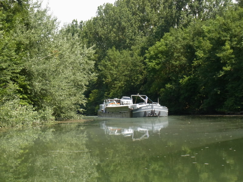 Le MARYLAND sur le Canal des Ardennes - avec une largeur de 5,11 m il a passé le signe qu`on peut voir sur la dernière photo. Il semble que le signe n`a qu`une raison juridique: si une peniche plus large que 5,05 m a un problème dans une écluse, VNF peut dire que ce soit dans la responsabilité du batelier parce que VNF a indiqué qu`on ne peut pas aller avec plus de 5,05 m sur cet canal.