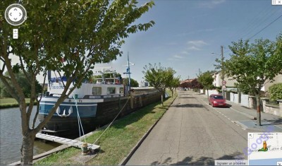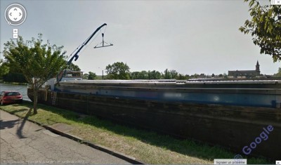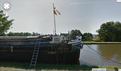 EL PASO y était amarré depuis quelques semaines, juste au moment où le marinier peignait la nouvelle devise sur le nez du bateau ! Voici ce qu'on voit sur Street View :