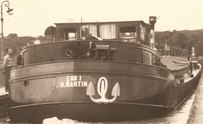 On voit bien sur cette photo prise en juillet 1958 au pont-canal de Briare que sur la plaque à l'arrière, en-dessous de la devise, le nom écrit est R. Martin :