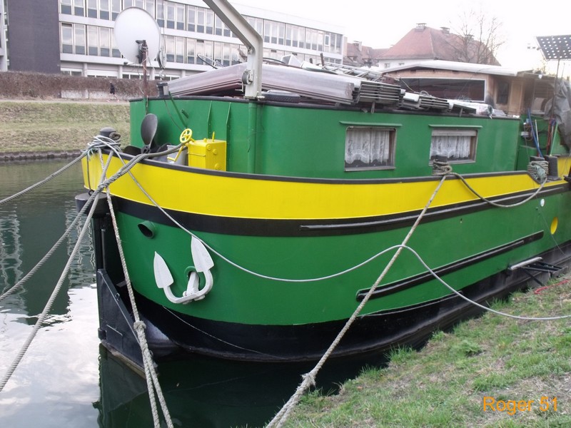 (renfort ? défense ?) à l'arrière, et les tôles peintes en noir à l'arrière aussi qui sont bien courbées jusqu'à quelques cm au-dessus de l'eau, comme sur les bateaux au cul "boule" (?)